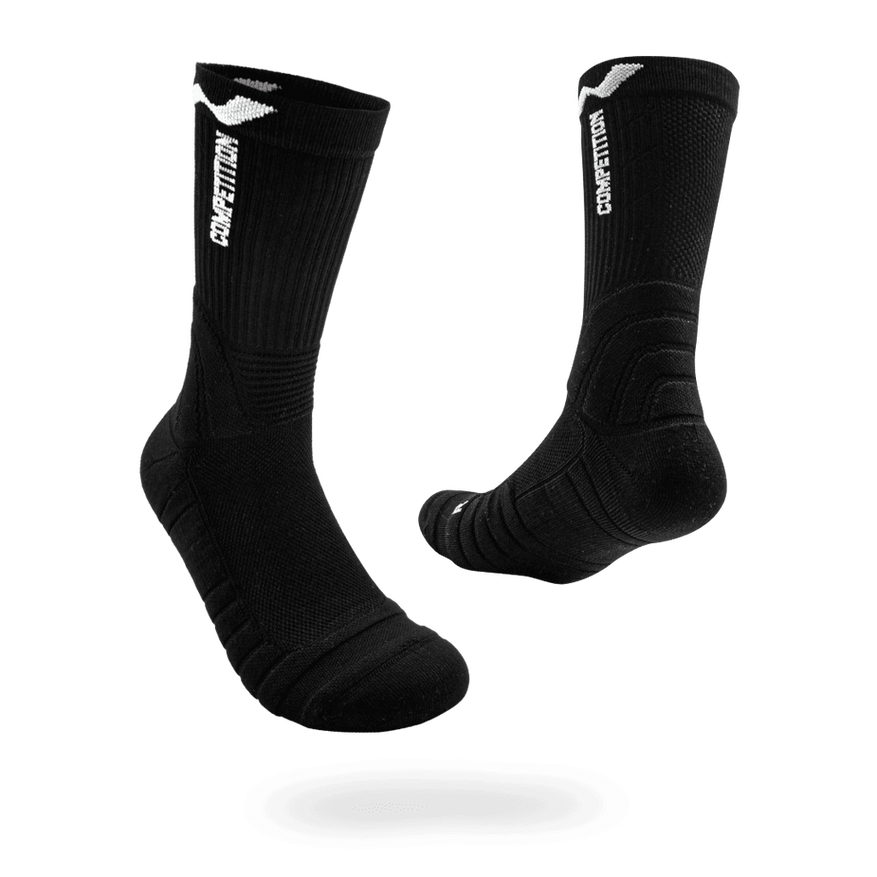 Los calcetines Competition están diseñados para atletas y amantes del deporte. Con felpa en la planta para mayor durabilidad, puntos de agarre que mejoran la estabilidad, compresión en la parte superior y soporte en el tobillo que amortigua el impacto. Además, su tejido antitranspirante en el empeine mantiene tus pies frescos y secos durante todo el entrenamiento.